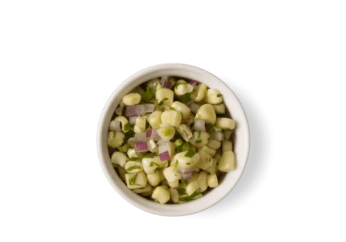 A hearty mix of supergreens lettuce blend, carnitas, fajita veggies, fresh tomato salsa, and guacamole.